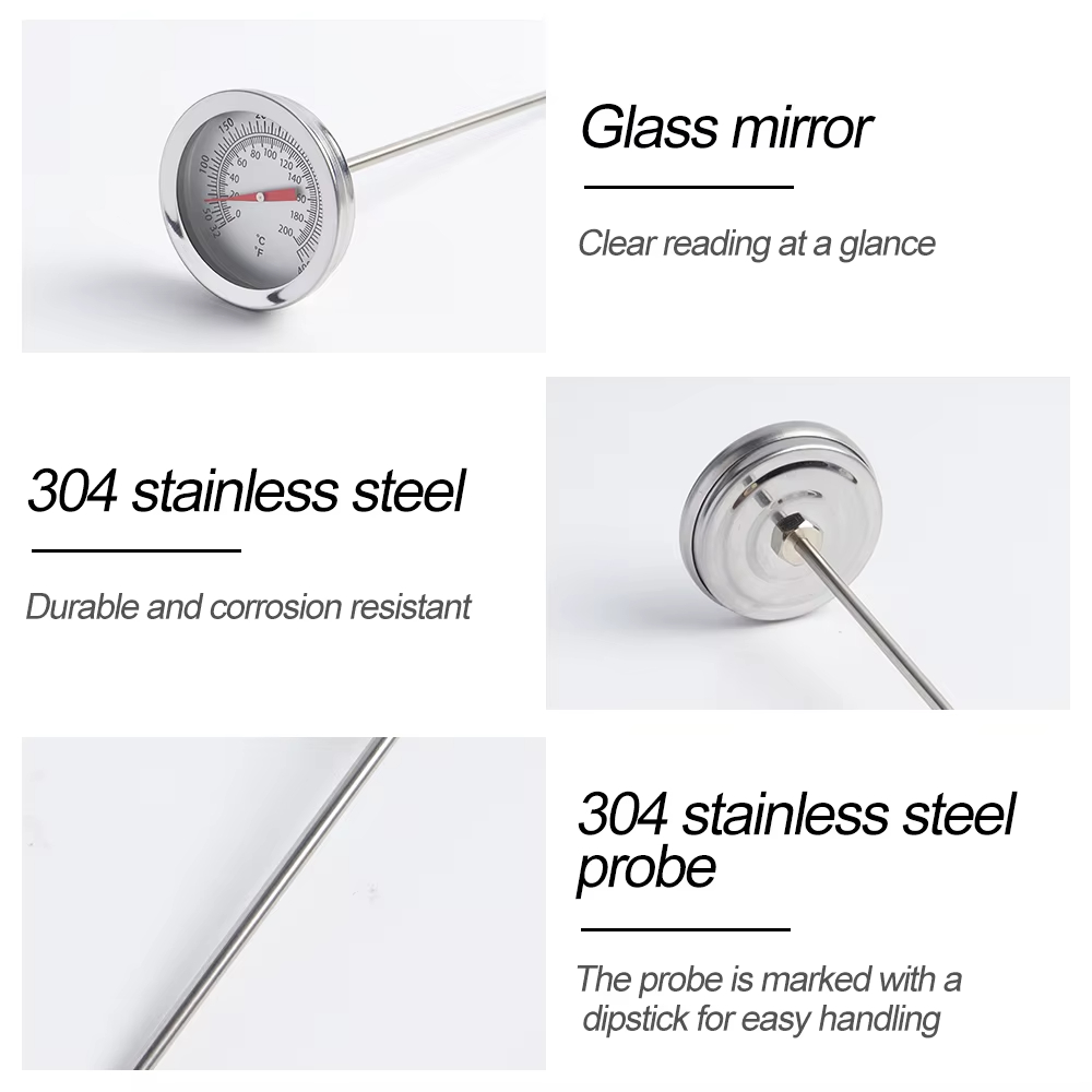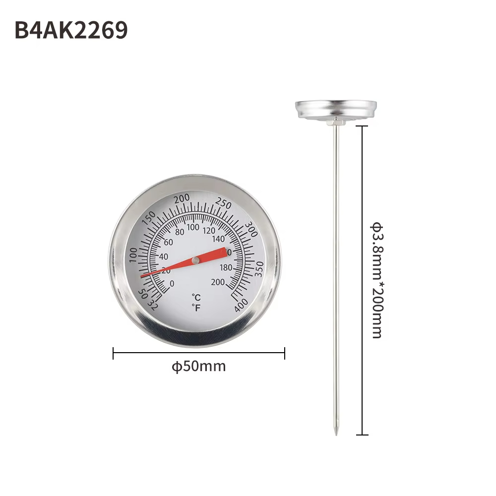 systems. Crafted as a bimetallic thermometer, it ensures precise temperature measurement, which is vital for maintaining fuel quality and system efficiency. Boasting an IPX7 waterproof rating, this thermometer can withstand wet conditions, making it suitable for various fuel tank environments. The clear dial, with color - coded blocks for easy reading, displays temperature clearly, and its colors and styles can even be customized to meet specific needs. Made from durable 304 stainless steel, it offers excellent corrosion resistance, ensuring long - term reliability in fuel tank applications. Whether for industrial fuel storage or vehicle fuel systems, this fuel tank thermometer provides the accuracy and durability required for optimal fuel management.