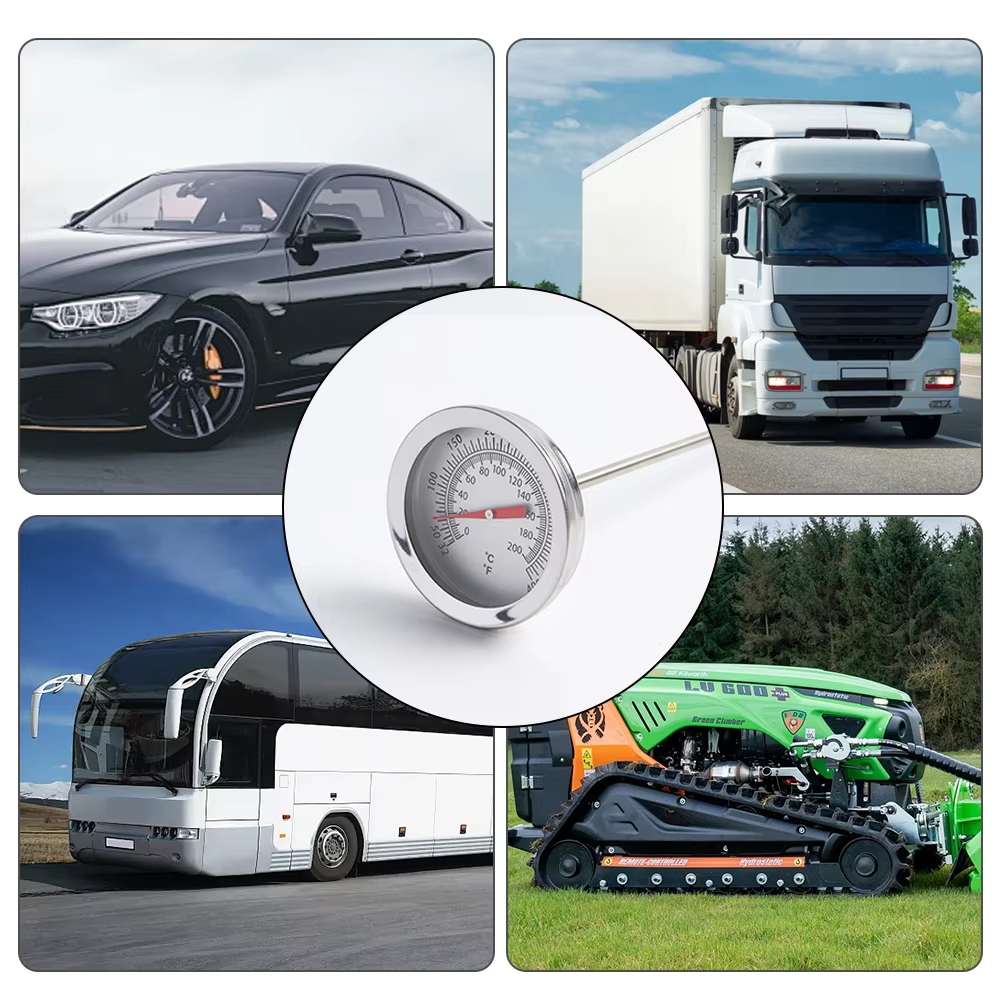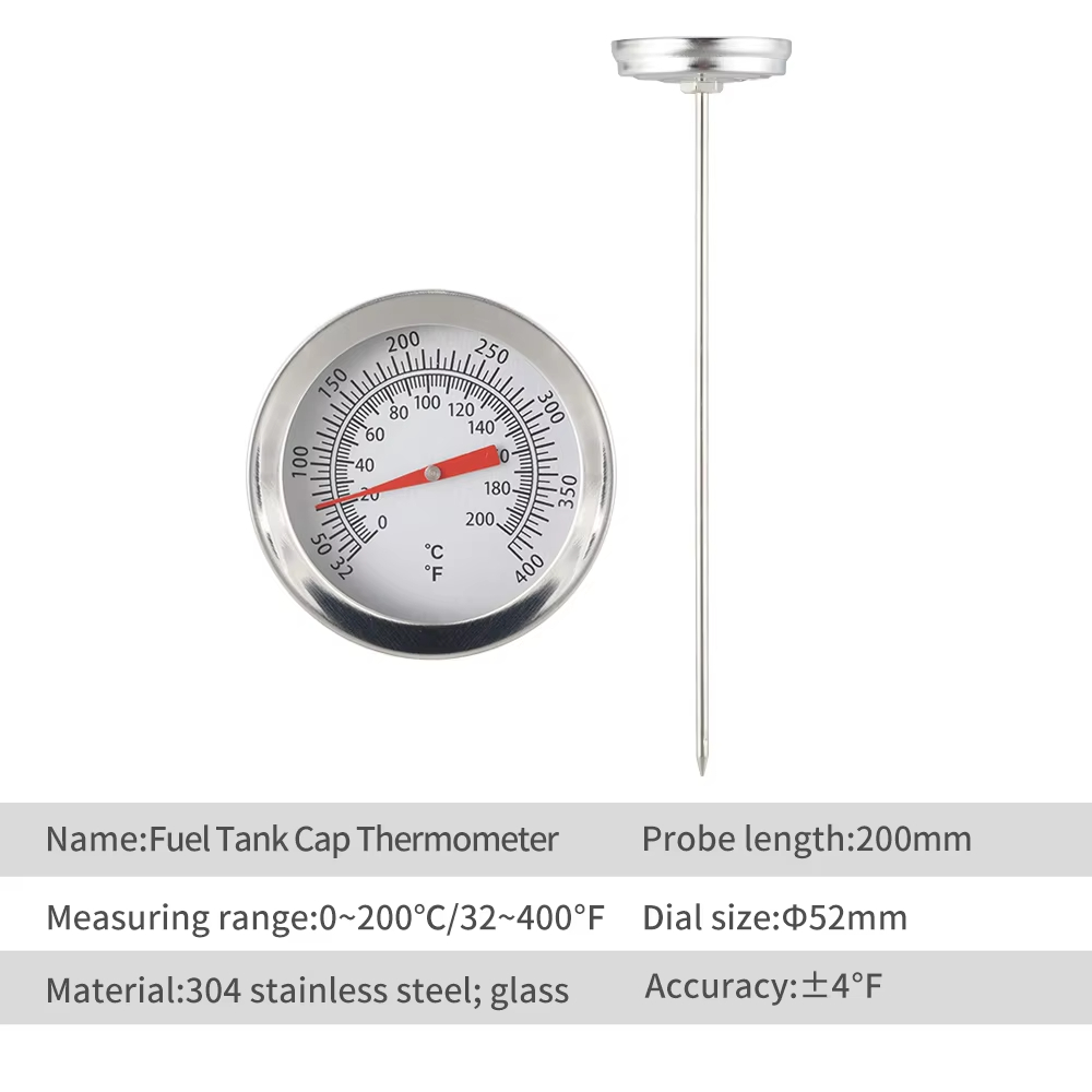 Fuel tank thermometer; Bimetallic thermometer, 304 stainless steel, precise temperature measurement, fuel system, fuel tank, corrosion resistance, color - coded dial, customized colors, durable, accurate reading, fuel management, industrial fuel storage, vehicle fuel system, temperature monitoring