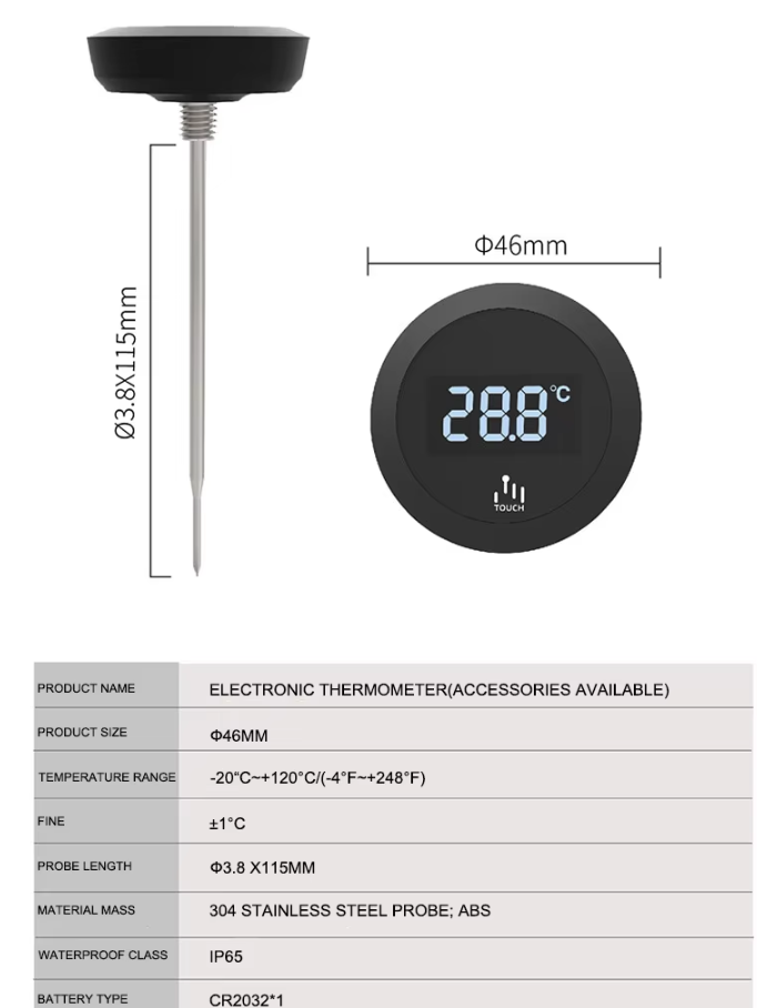 CK2866 Factory Direct Sales Digital Touch Screen LCD Display Thermometer for Kettle Hand Brew Coffee