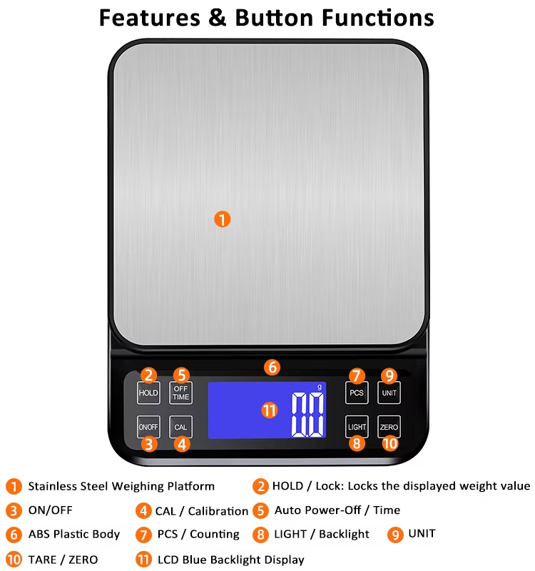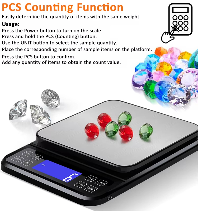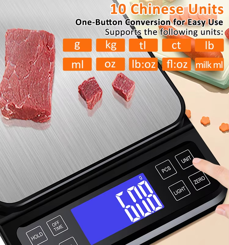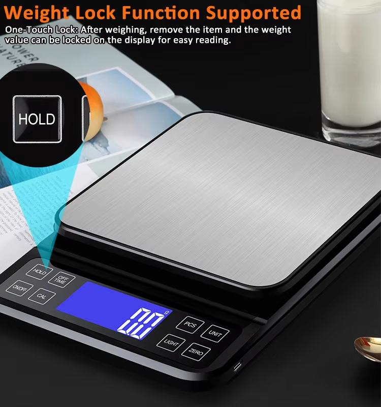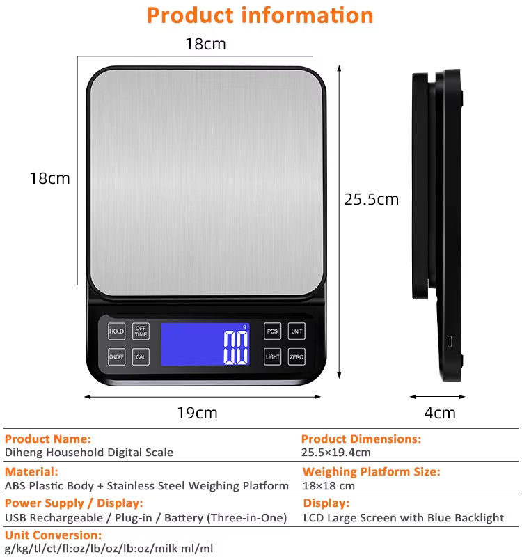 • DH-406-5000g 5Kg/0.1g USB Rechargeable Digital Food Scales Multifunctional Electrical Kitchen Scales With LCD Display