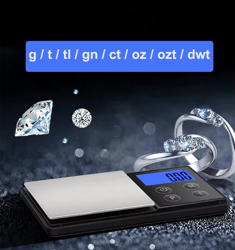 • DH-8602-500g 500g/0.01g Digital Jewelry Scales Travel-Sized Mineral Gold Scale for Kitchen Power Source Weight Measuring