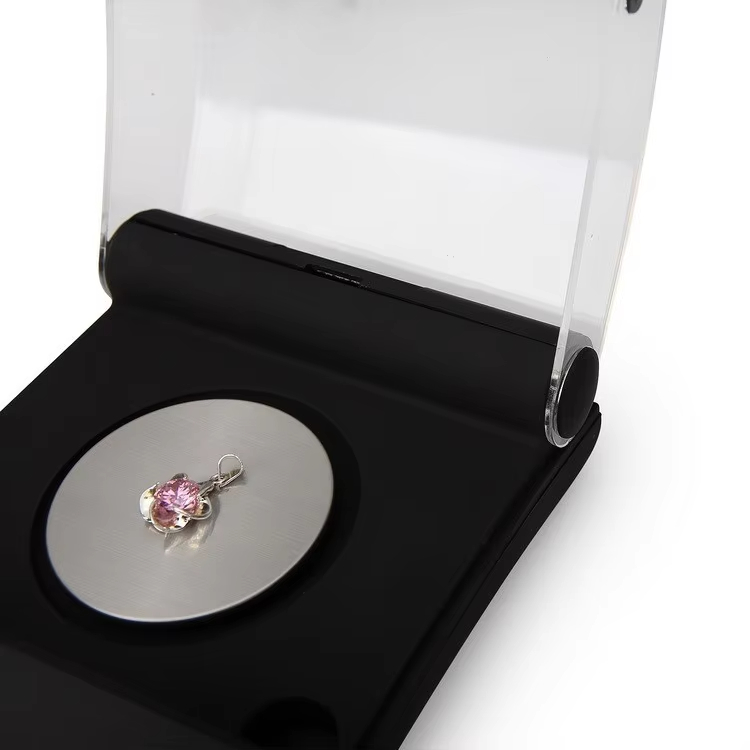 *Measurement range/accuracy: 100g/0.001g *Blue backlight *Display unit: g/oz/ozt/dwt/gn/ct *Automatic shutdown function *Tare function *Counting function *Calibration function *Low battery indicator function *Overload/low voltage protection function *Operating temperature: 10-30 degrees *Battery: 4 x AAA (four AA batteries) (Not Included) *Power supply: DC9V power adapter (optional) *Product size: 13.8 x 7.0 x 32cm *Weighing pan size: 6.0cm *Windshield height: 4.5cm *Net weight: 195g