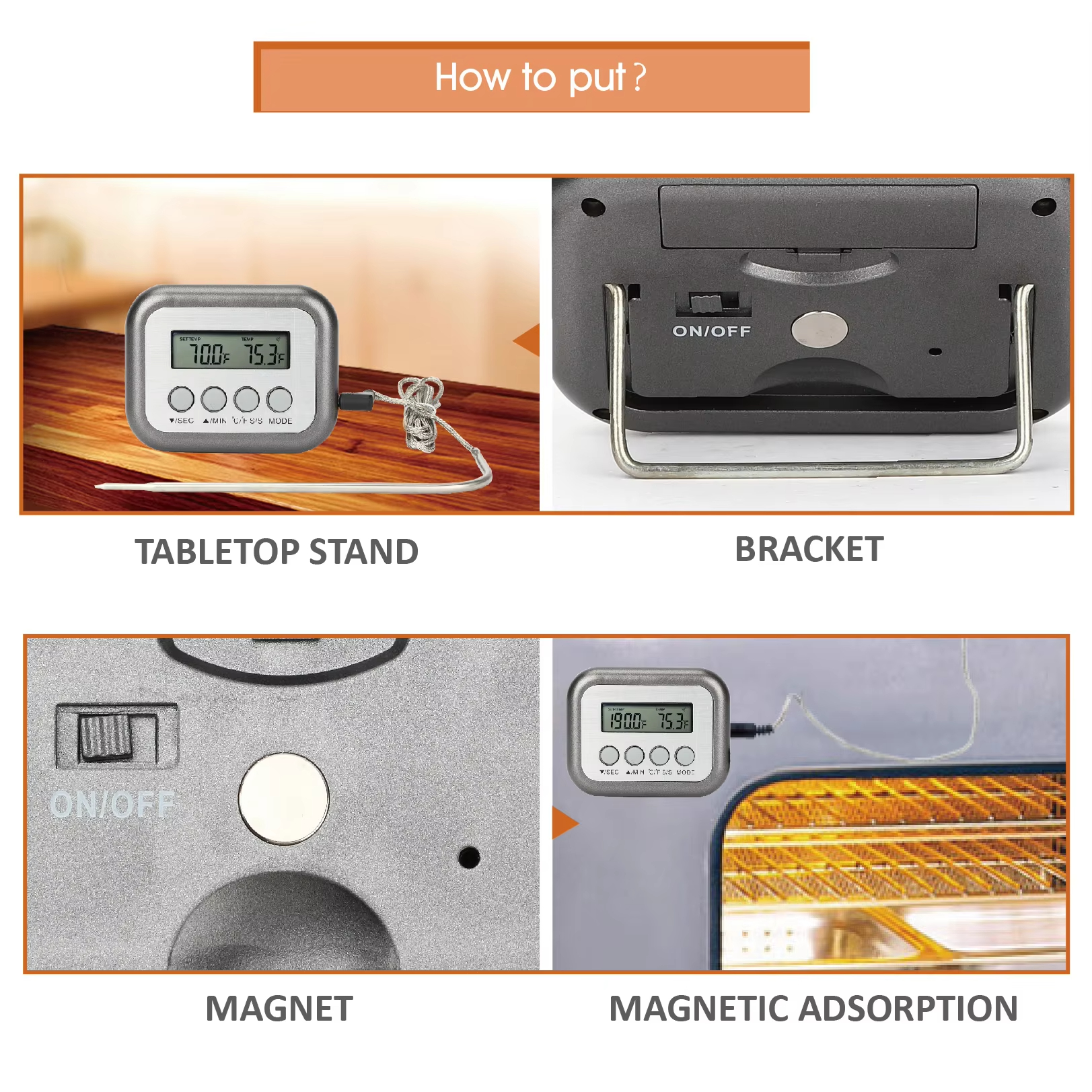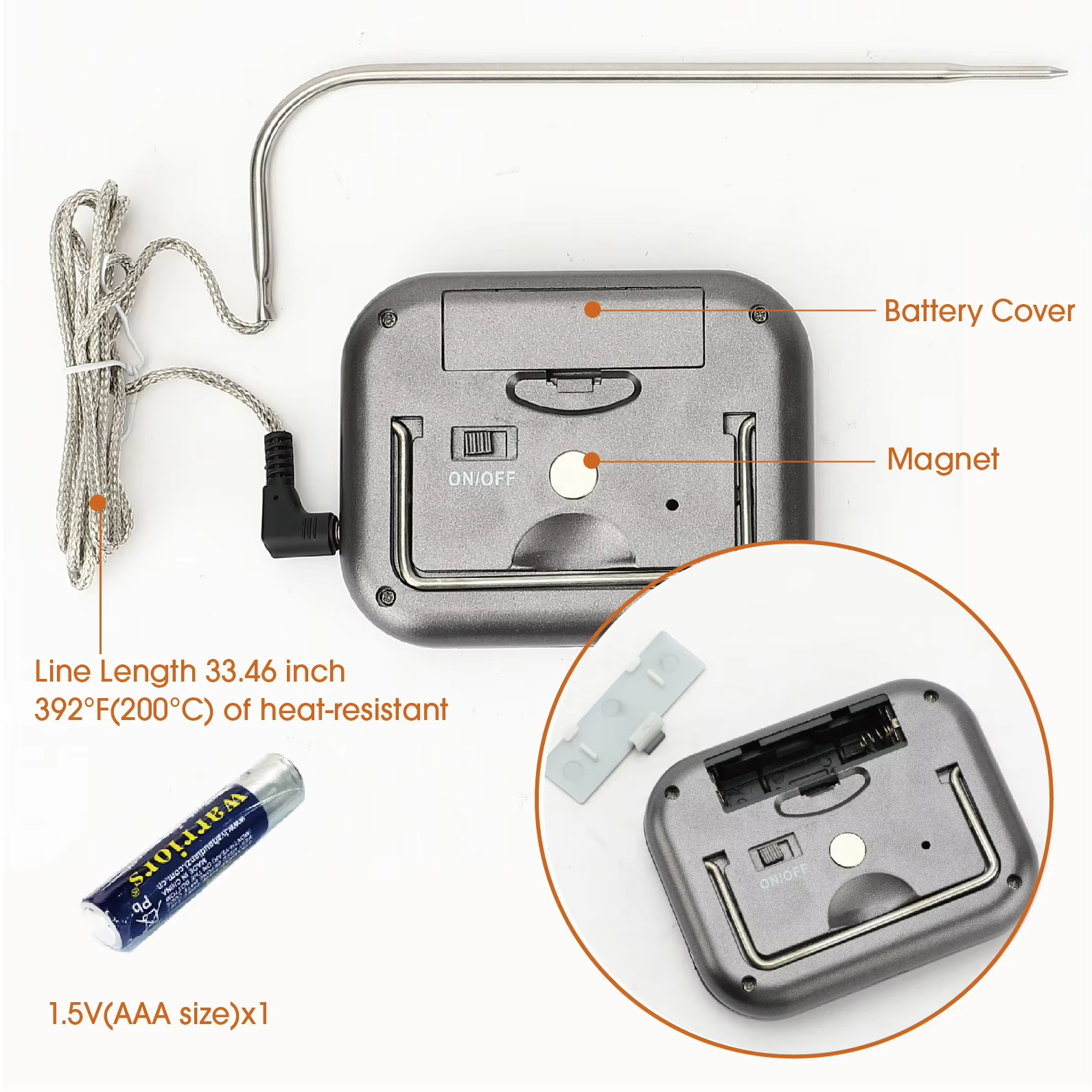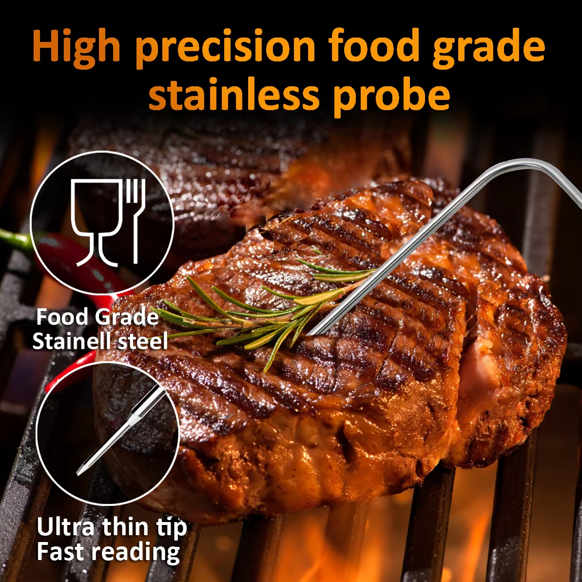 Usage: Measure the temperature of grilled meat, barbecue, milk, coffee, etc
